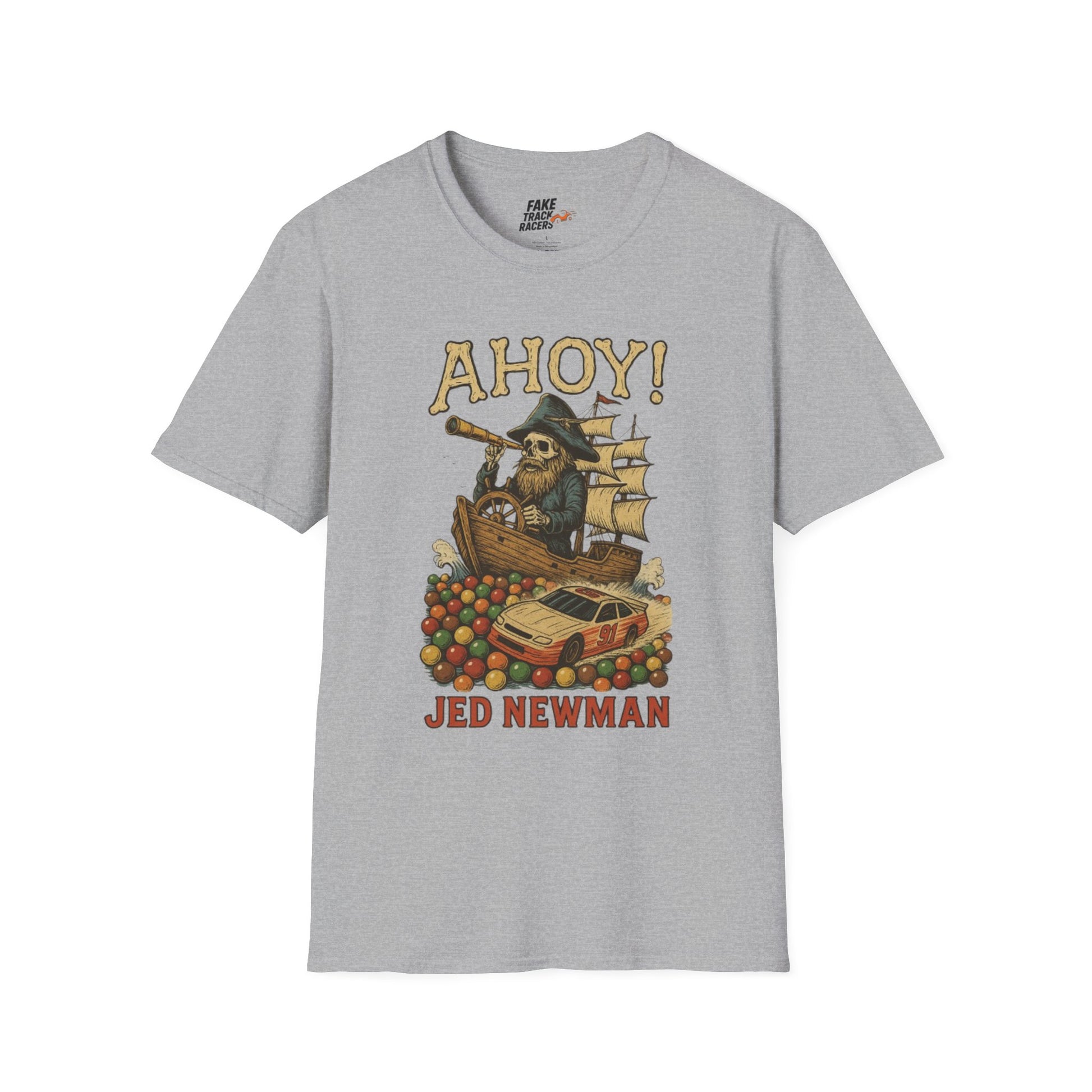 Vintage Style 90s Racing Tee JED NEWMAN Pirate Fake Track Racers