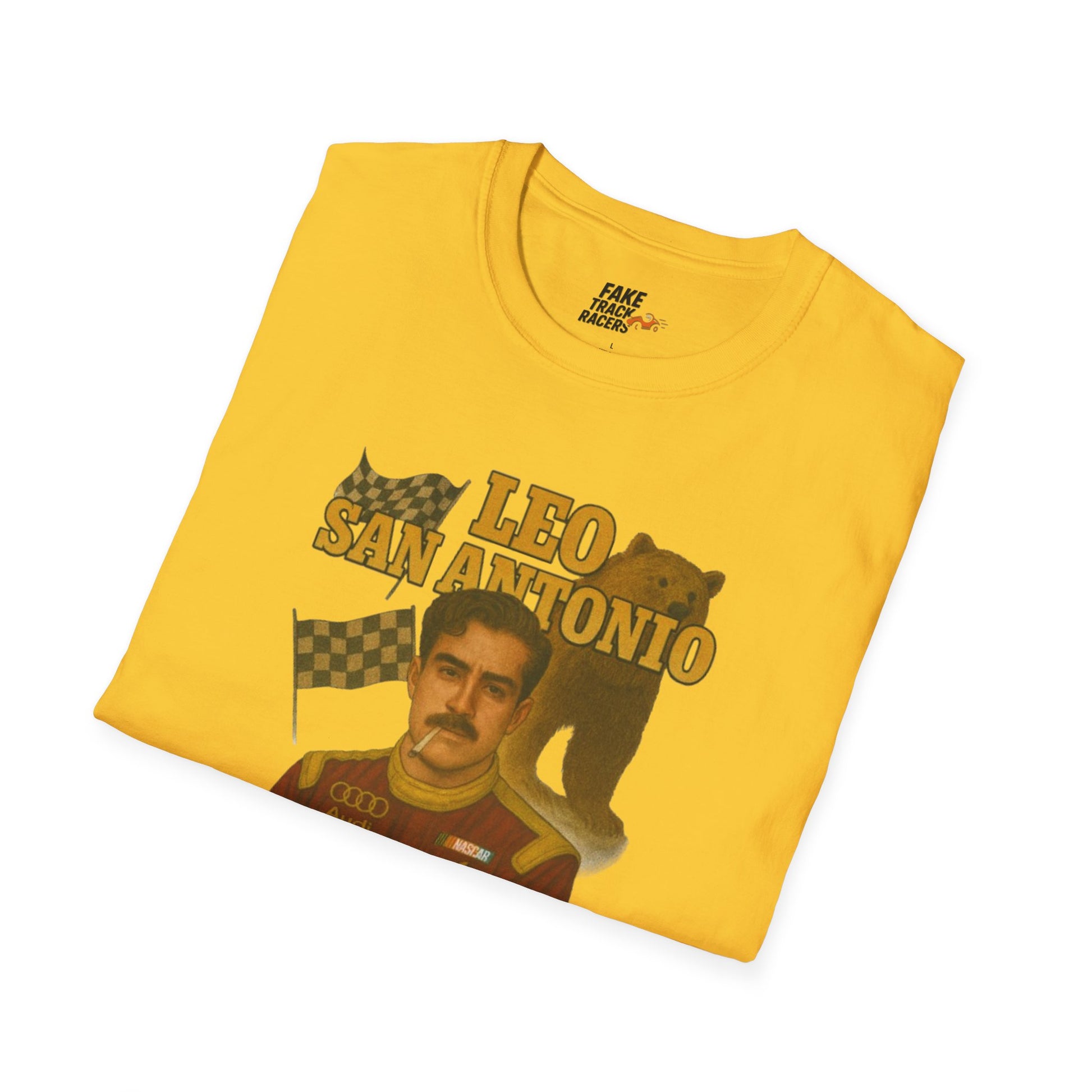 Vintage Style 90s Racing Tee Shirt LEO SAN ANTONIO Grizzly Shirt Fake Track Racers